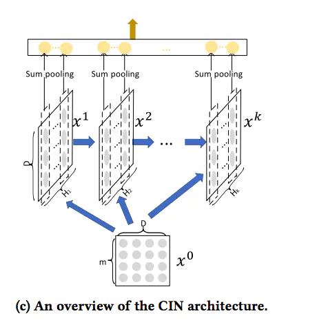 CIN的宏观框架可以总结为下图,在做pooling时 考虑到向量中所有数据都是有用的,所以不会选择max pooling(会将大部分数据丢掉,比如应用在图像处理中,只提取出最明显的特征),而是选择sum pooling: