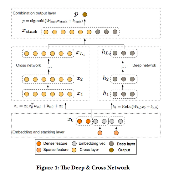 因此自动学习特征间的交互关系是十分有意义的。目前大部分相关的研究工作是基于因子分解机的框架,利用多层全连接神经网络去自动学习特征间的高阶交互关系,例如FNN、PNN和DeepFM等。其缺点是模型学习出的是隐式的交互特征,其形式是未知的、不可控的;同时它们的特征交互是发生在元素级(bit-wise)而不是特征向量之间(vector-wise),这一点违背了因子分解机的初衷。来自Google的团队在KDD 2017 AdKDD&TargetAD研讨会上提出了DCN模型,旨在显式(explicitly)地学习高阶特征交互,其优点是模型非常轻巧高效,但缺点是最终模型的表现形式是一种很特殊的向量扩张,同时特征交互依旧是发生在元素级上。