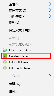 现在在文件夹上右键点击Cmder here 就能在cmder里进入该目录