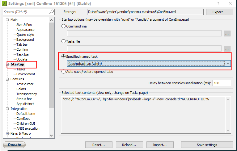 win+alt+p打开设置面板,找到Startup -> Tasks选项,在右侧选中{cmd::Cmder} 把