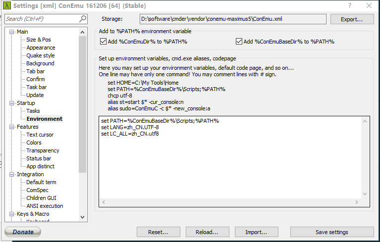 之前在网找了好多方法,可是都解决不了,很多人在在Environment里添加set LANG=zh_CN.UTF-8来解决中文乱码的问题,可是我用这个方法并没有成功,可能是环境的原因吧,我的系统是win10的。