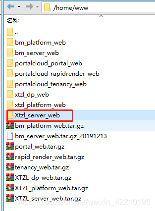 例如:/home/www下新建 xtzl_platform_web文件夹