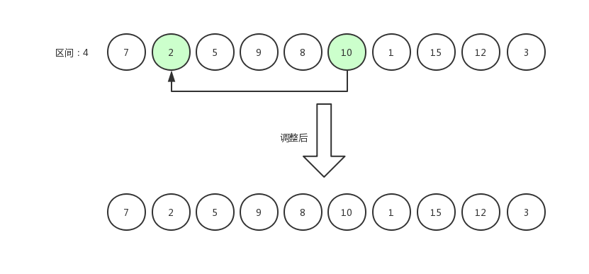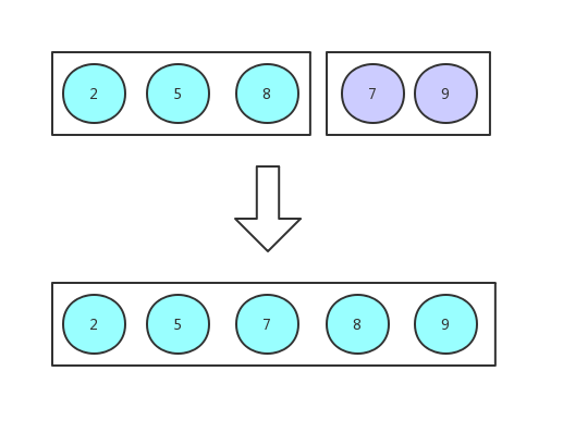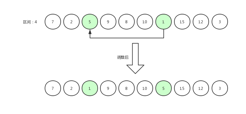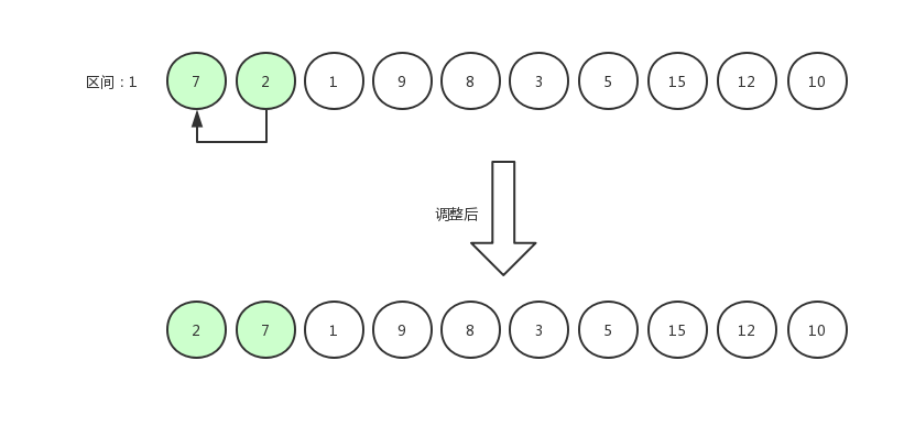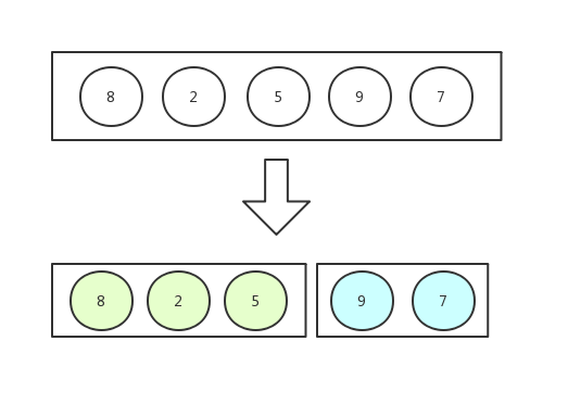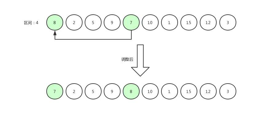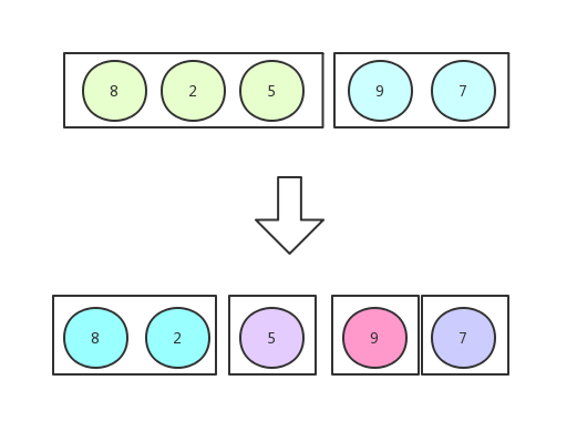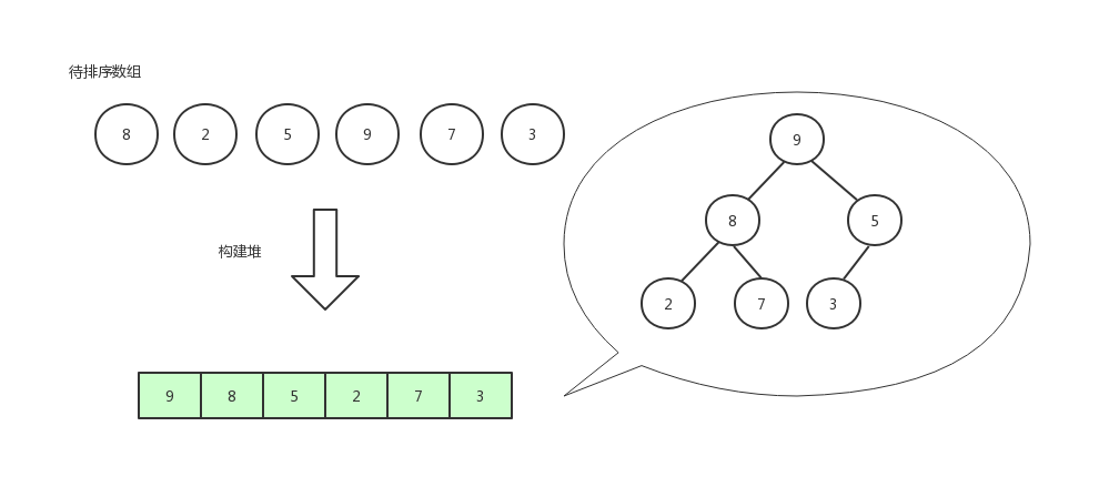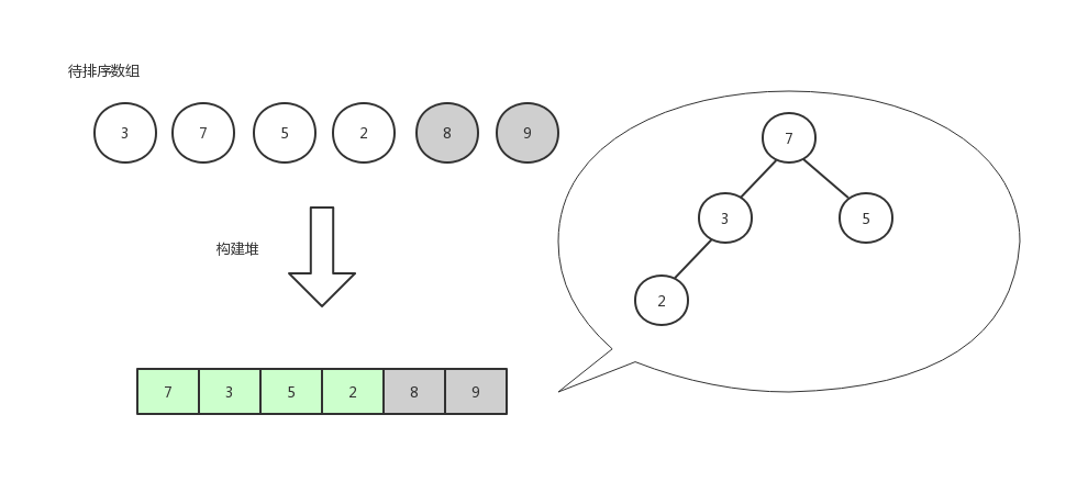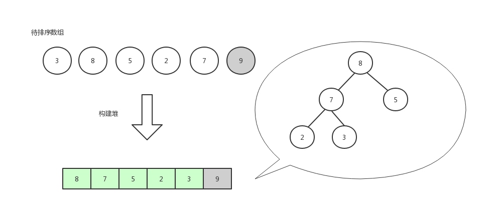 以 [ 8,2,5,9,7 ] 这组数字来做示例,上图来战: