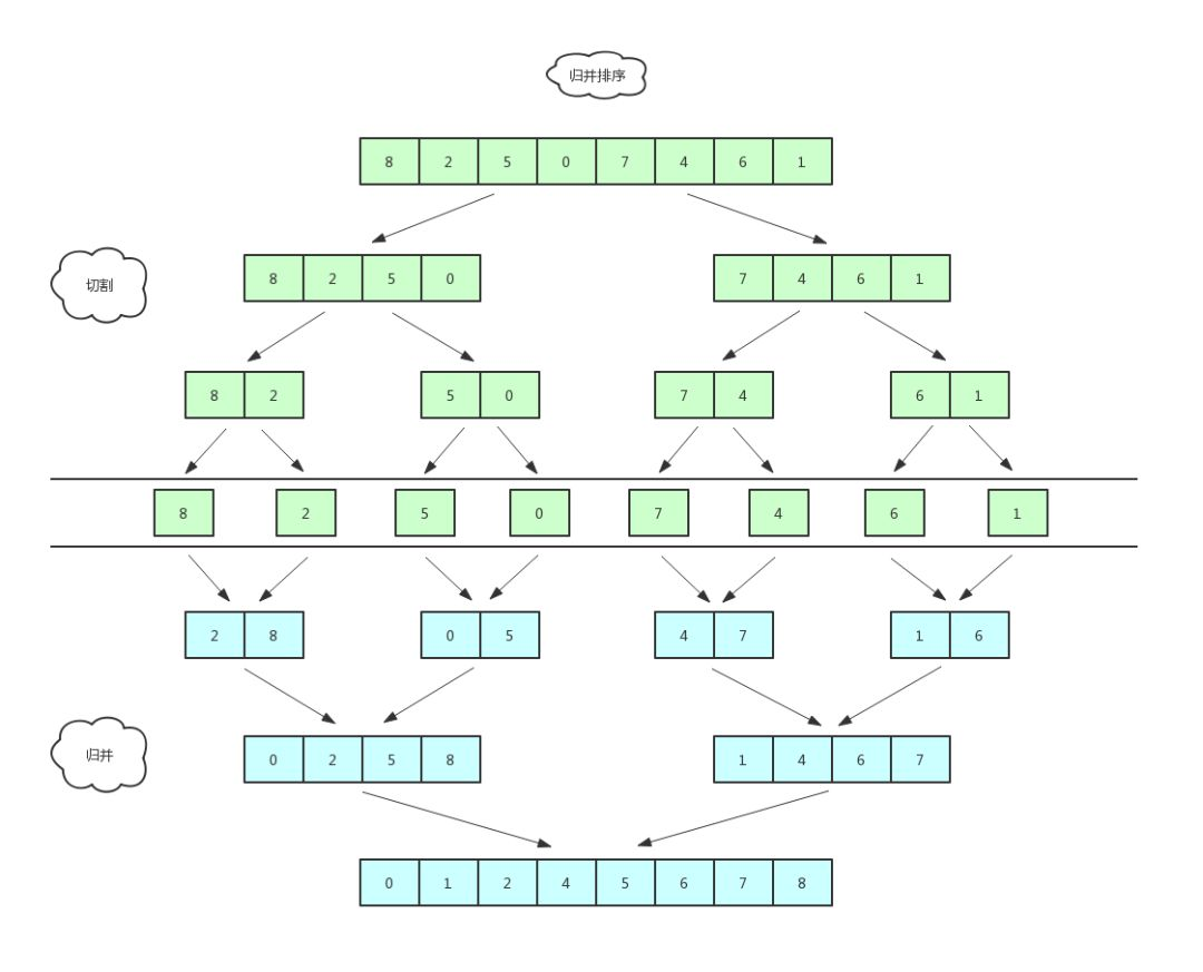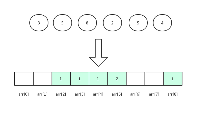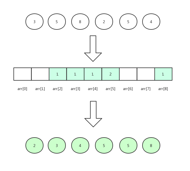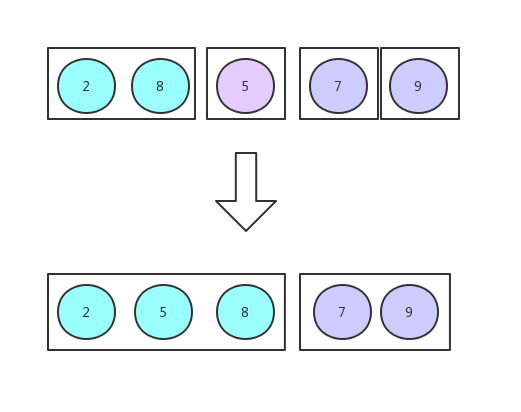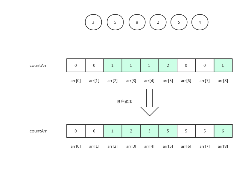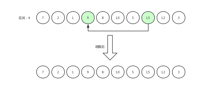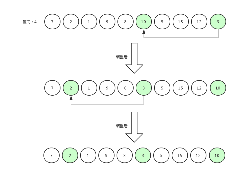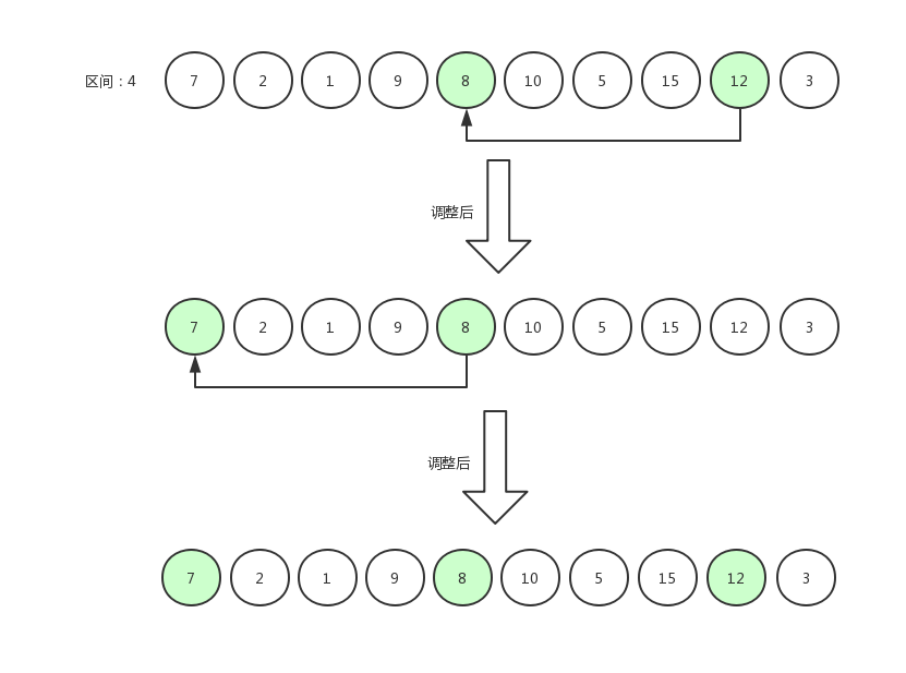 以 [ 8,2,5,9,7 ] 这组数字来做示例,上图来战: