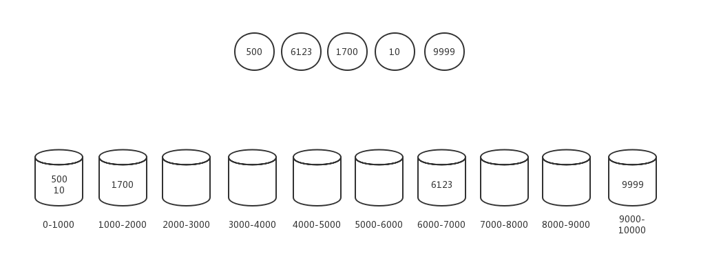 //当前数除以区间得出存放桶的位置 减1后得出桶的下标