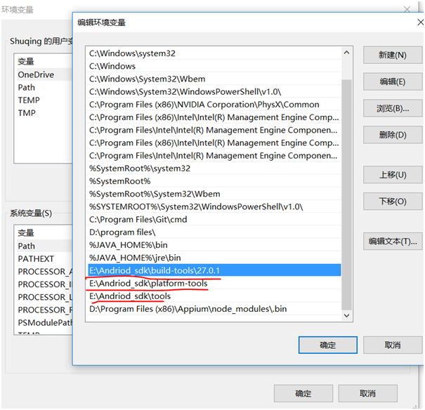 • 其他几个路径配置到系统环境Path中如下图所示:
