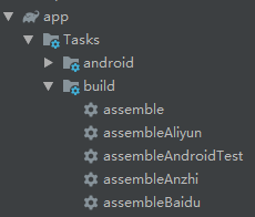 是不是和我的一样,有很多assemble项,当然里面还有assembleDebug和assembleRelease,想打包哪个就双击哪个就好了。打包出来的.apk文件名称是否符合你的要求呢,如果想自动加上渠道名称是否有办法呢?当然了,这个可以有: