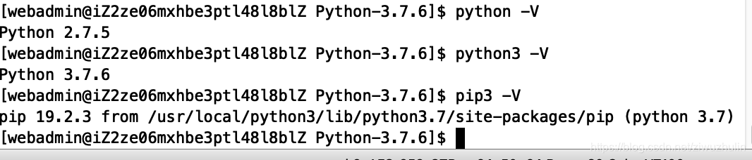 使用python3 -V #V为大写查看Python的版本信息,正是需要的Python3.7.5。