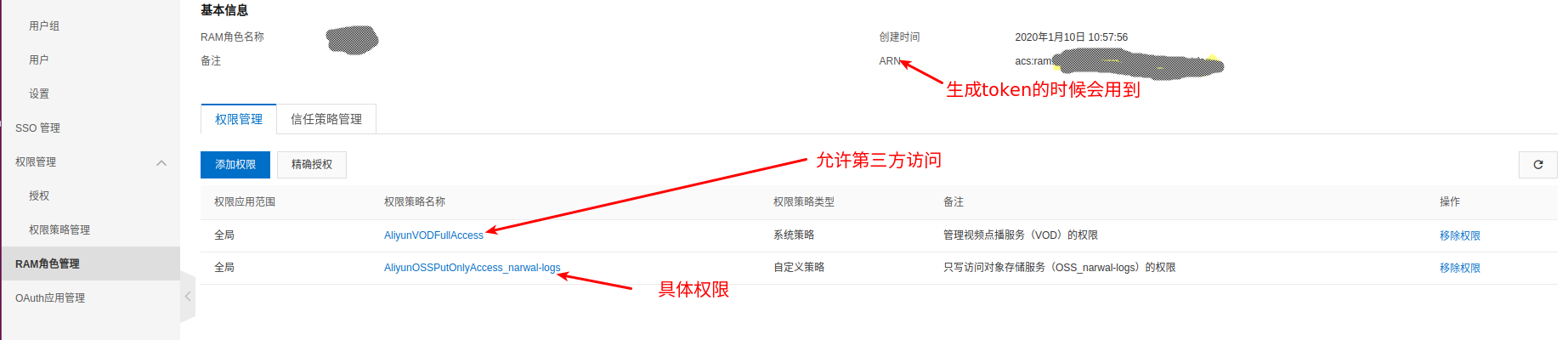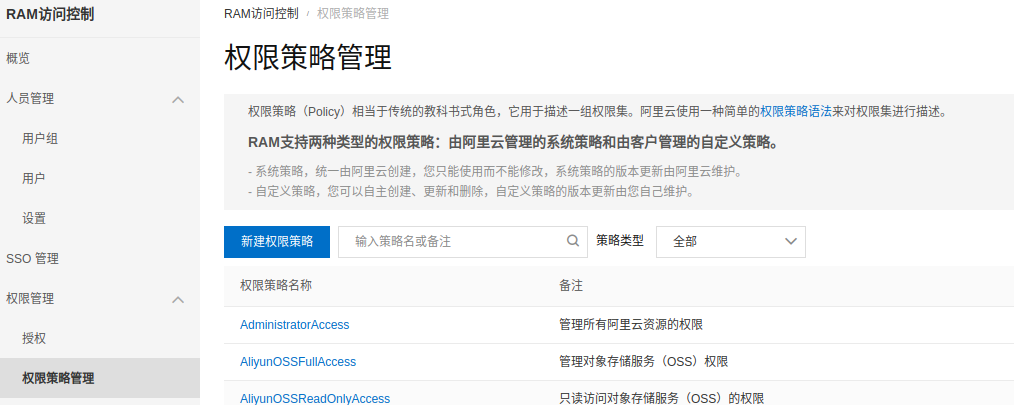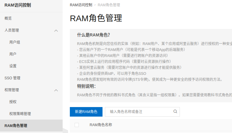 - 访问控制点击RAM角色管理,并新建RAM角色