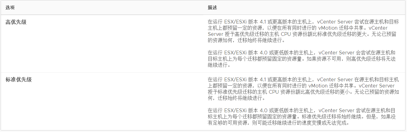 通过 vMotion 迁移虚拟机之前,请确保主机和虚拟机符合 vMotion 迁移的要求。有关 vMotion 的主机配置、虚拟机条件和限制的详细信息,请参见《vCenter Server 和主机管理》出版物。
