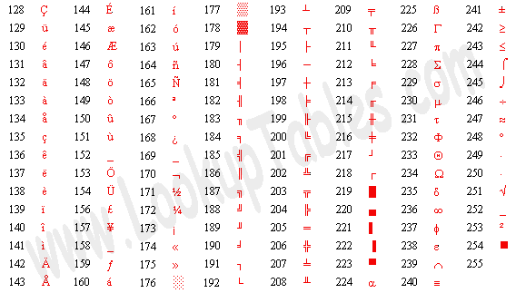 绝大多数计算机的一个字节是8位,取值范围是0~255,而ASCII码并没有规定编号为128~255的字符,为了能表示更多字符,各厂商制定了很多种ASCII码的扩展规范。注意,虽然通常把这些规范称为扩展ASCII码(Extended ASCII),但其实它们并不属于ASCII码标准。例如以下这种扩展ASCII码由IBM制定,在字符终端下被广泛采用,其中包含了很多表格边线字符用来画界面。