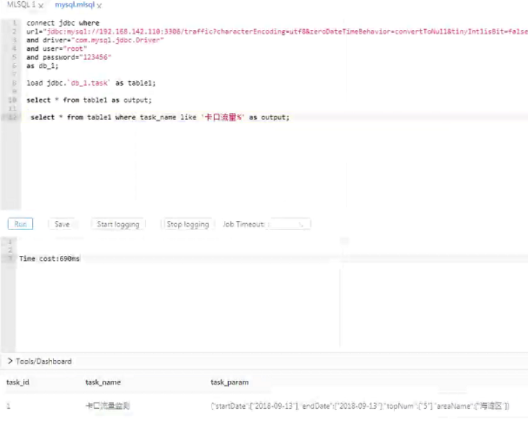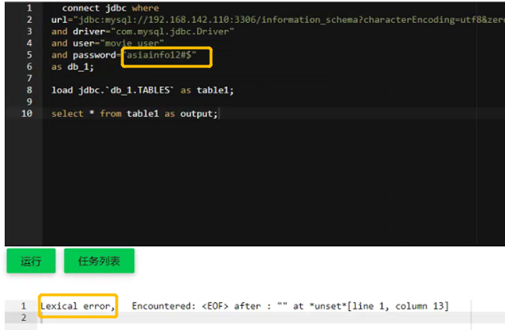 mlsql 的语法支持 like 语法(测试 MySQL HBase) 当密码有特殊字符(!@#$%^&*)解析失败
