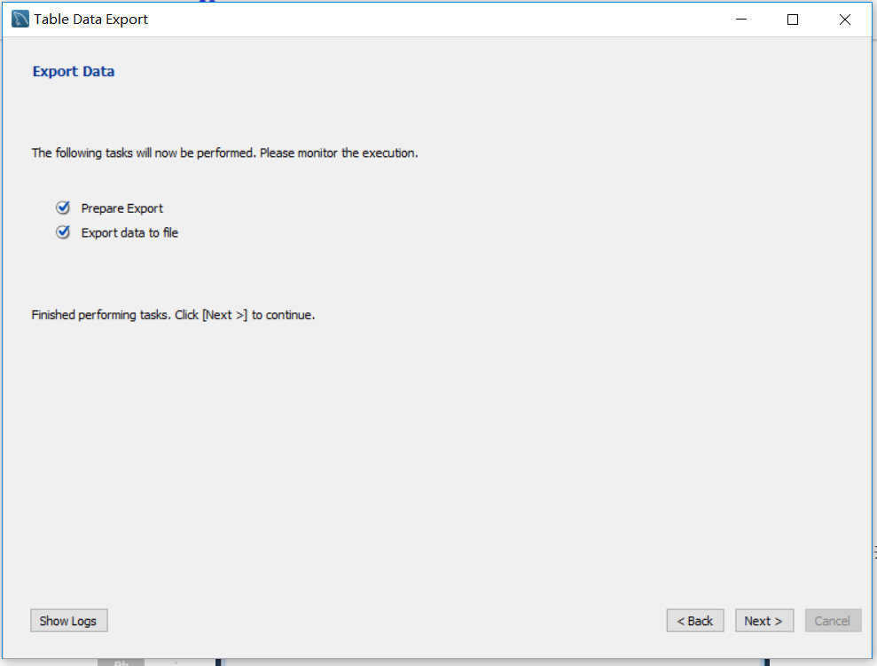 4、第四步,执行导出数据到文件,并单击“Next”,注意导出数据,进入下一步,如下图所示:
