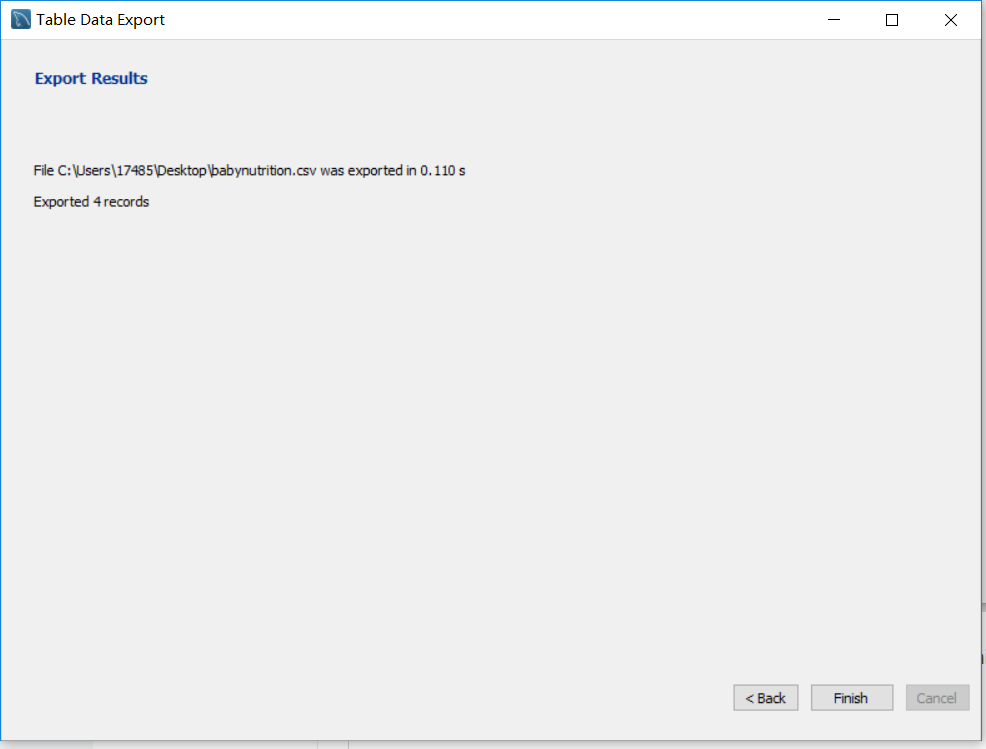 6、第六步,导出完毕后,显示导出文件路径以及花费时间,点击“Finish”完成导出,并在指定路径下找到导出文件,如下图所示: