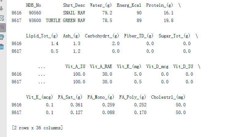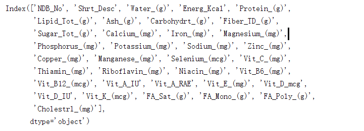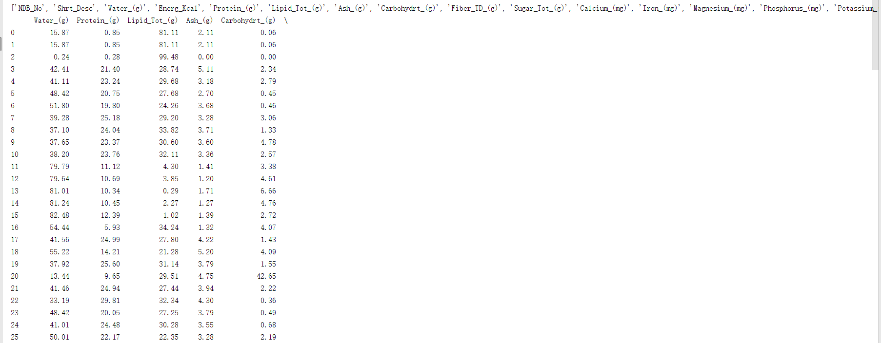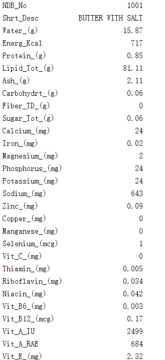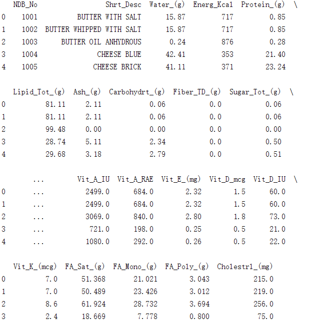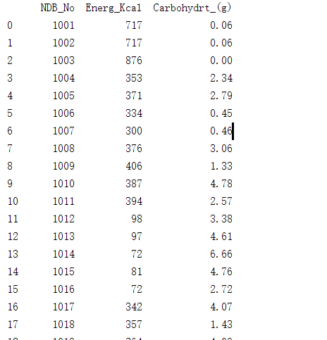 columns=['NDB_No','Energ_Kcal','Carbohydrt_(g)']