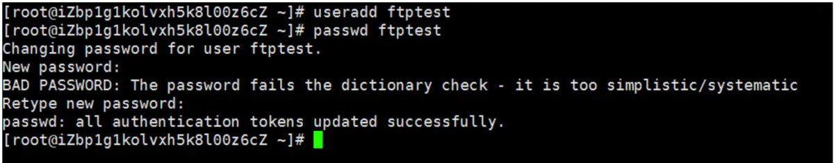 ②. 运行以下命令修改 ftpuser 用户密码:`passwd ftpuser`