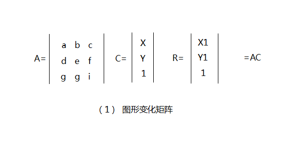 对于图像的色彩处理,Android系统提供了ColorMatrix颜色矩阵来帮助我们进行图像处理。而对于图像的图形变化,Android系统也是通过来进行处理的,每个像素点都表达了其坐标的X、Y信息。Android的图形变换矩阵是一个3x3的矩阵,如图(1)所示。