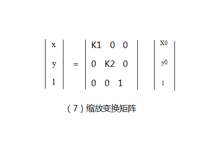 通过计算,就可以还原以上等式,因此图(7)所示矩阵即为缩放变换矩阵。