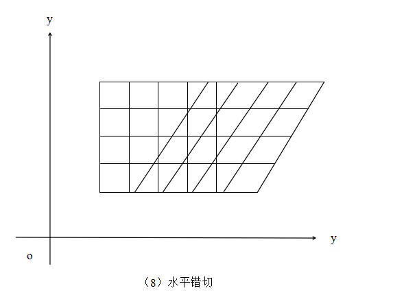 错切变换通常包好两种——水平错切和垂直错切,分别如图(8)、图(9)所示。