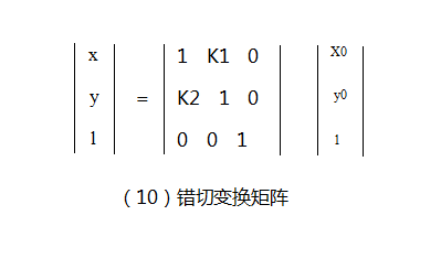 通过计算,就可以还原到以上等式。因此图(10)所示矩阵即为错切变换矩阵。