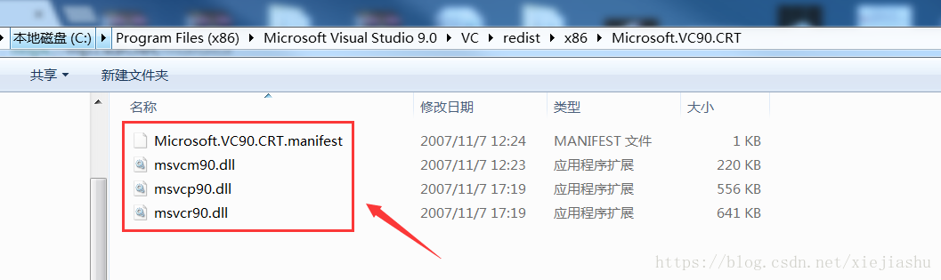 知道了问题所在之后,就着手解决问题了。我们从本地的开发环境中,找到VC90 CRT一整套的DLL,直接copy到宇视OCX安装的路径: