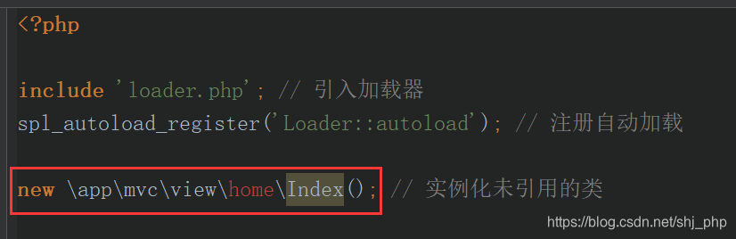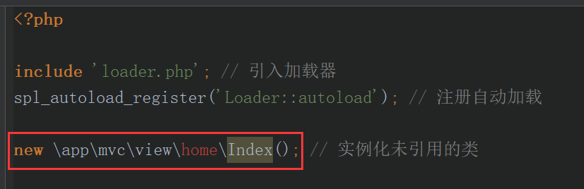 new \app\mvc\view\home\Index(); // 实例化未引用的类