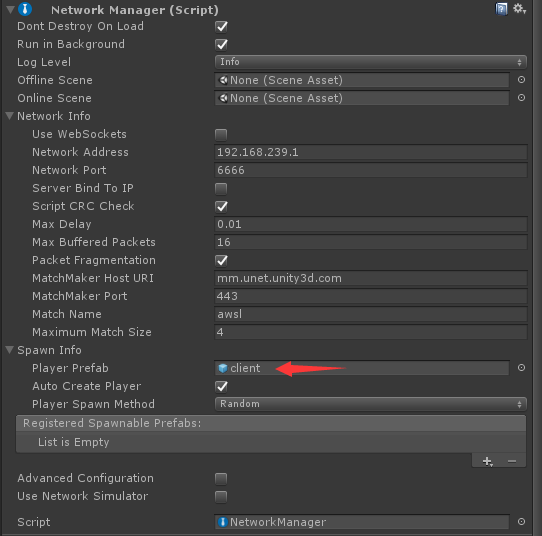 无论是哪种方式,unet里的的一个特点就是:服务器端是会包括客户端的。换言之客户端和服务器是在同一个场景里开发的。。。此处的包括二字何解?就是服务器端会自动生成一个player(之前很多文章都在讲unet的player与服务器同步的问题,那是入门级别的东西,多看看就知道是怎么回事)。这个player身上具备的属性就是客户端的玩家具备的属性。当然这个player只是代指客户端而已。实际可以理解为在networkmanager里自动生成一个客户端。