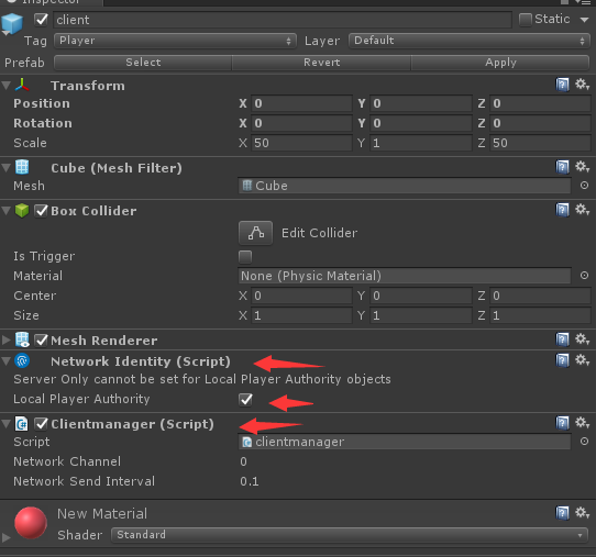 client这个物体添加network identity,和我写的Clientmanager脚本