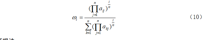 将判别矩阵的各个向量采用几何平均后归一化,得到的列向量近似作为加权向量。