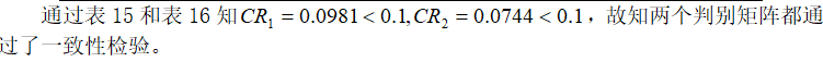 cr1=ci1/0.89 %一致性比率CR,如果小于0.1,则通过一致性检验。
