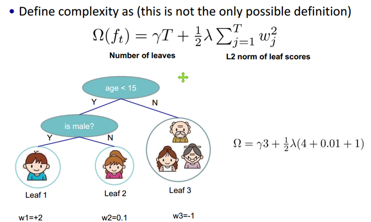 start from constant prediction, add a new function each timey ^ ( 0 ) = 0 \hat y^{(0)}=0 y ^ ( 0 ) = 0 y ^ ( 1 ) = f 1 ( x i ) = y ^ i ( 0 ) + f 1 ( x i ) \hat y^{(1)}=f_1(x_i)=\hat y_i^{(0)}+f_1(x_i) y ^ ( 1 ) = f 1 ( x i ) = y ^ i ( 0 ) + f 1 ( x i ) y ^ ( 2 ) = f 1 ( x i ) + f 2 ( x i ) = y ^ i ( 1 ) + f 2 ( x i ) \hat y^{(2)}=f_1(x_i)+f_2(x_i)=\hat y_i^{(1)}+f_2(x_i) y ^ ( 2 ) = f 1 ( x i ) + f 2 ( x i ) = y ^ i ( 1 ) + f 2 ( x i )