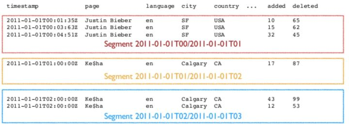 DataSource是一个逻辑概念, Segment却是数据的实际物理存储格式, Druid正是通过 Segment实现了对数据的横纵向切割( Slice and Dice)操作。从数据按时间分布的角度来看,通过参数 segmentGranularity的设置, Druid将不同时间范围内的数据存储在不同的 Segment数据块中,这便是所谓的数据横向切割。这种设计为 Druid带来一个显而易见的优点:按时间范围查询数据时,仅需要访问对应时间段内的这些 Segment数据块,而不需要进行全表数据范围查询,这使效率得到了极大的提高。