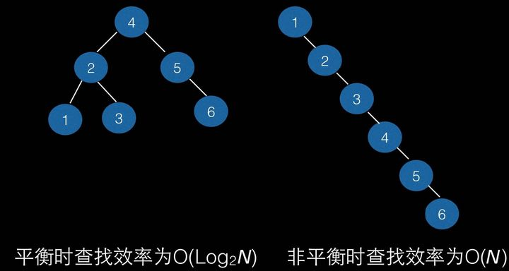 最常见的树结构是二叉查找树( Binary Search Tree),它就是一棵二叉有序树:保证左子树上所有节点的值都小于根节点的值,而右子树上所有节点的值都大于根节点的值。其优点在于实现简单,并且树在平衡的状态下查找效率能达到 O(logଶ?);缺点是在极端非平衡情况下查找效率会退化到 O(?),因此很难保证索引的效率。