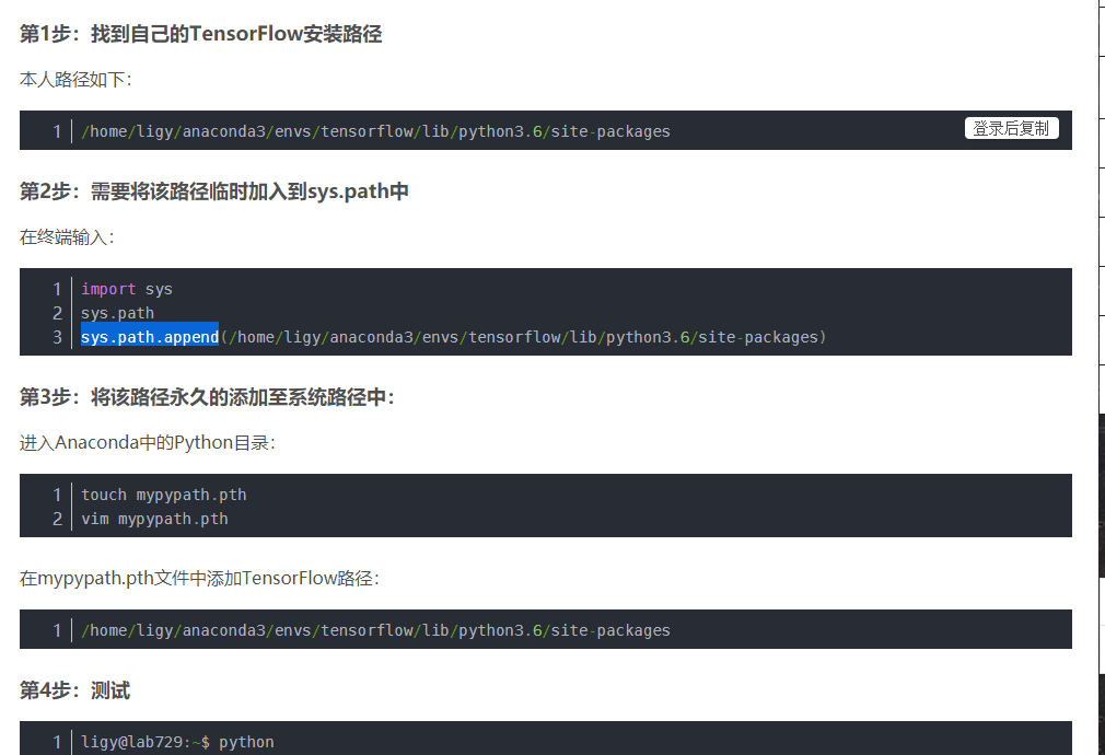 问题描述:linux环境中,在pi用户下可以使用 import tensorflow