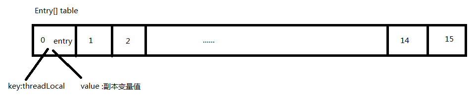 ThreadLocalMap中内部类Entry的value表示线程存储的副本变量值。Entry继承WeakReference,Entry的key是ThreadLocal,是弱引用,在垃圾回收时被回收。