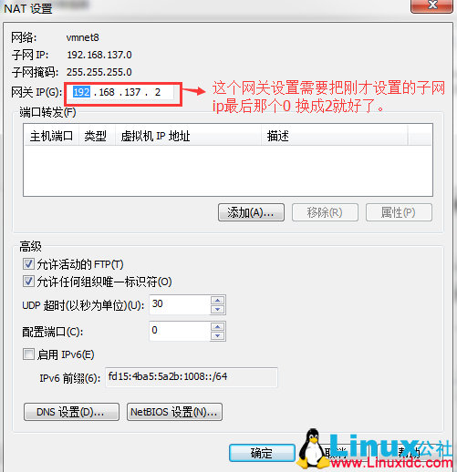 然后别急着点击确定, 点击 NAT设置 进去后这样设置