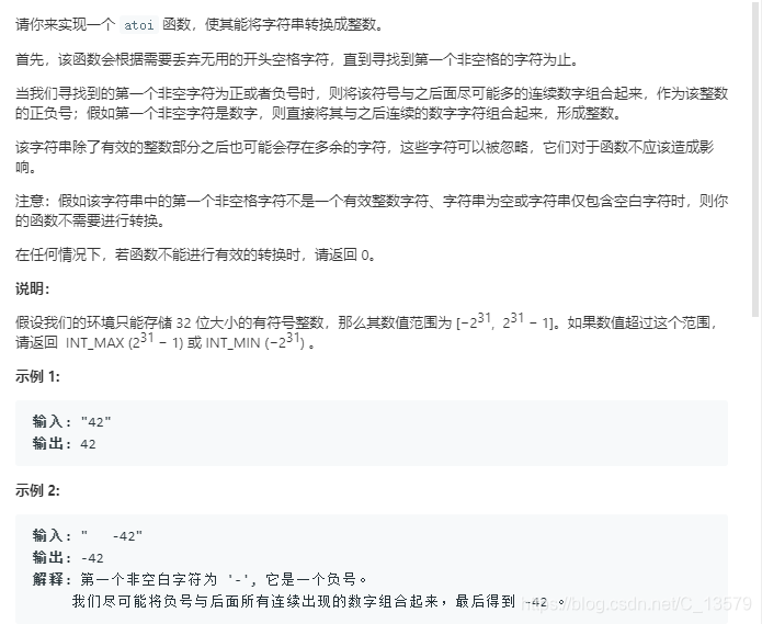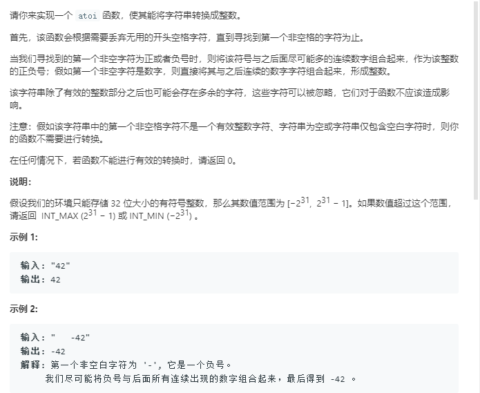 地址:https://leetcode-cn.com/problems/string-to-integer-atoi/
