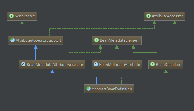 BeanDefinition相当于Spring的类。Java通过类来创建实例,同理,Spring通过BeanDefinition来创建Bean。Spring管理Bean组件需要经过实例化的过程,这个实例化过程除了Java类所拥有的信息,还要解决作用域、实例化条件、组件依赖等一系列问题,Spring将这些信息封装在了BeanDefinition对象中。可以这样来理解:Bean是高级的实例,BeanDefinition是高级的class。