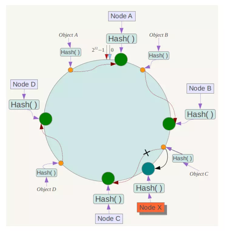 如上图所示,假如node1的ip是192.168.1.109,那么原node1节点在环形空间的位置就是hash(“192.168.1.109”)。