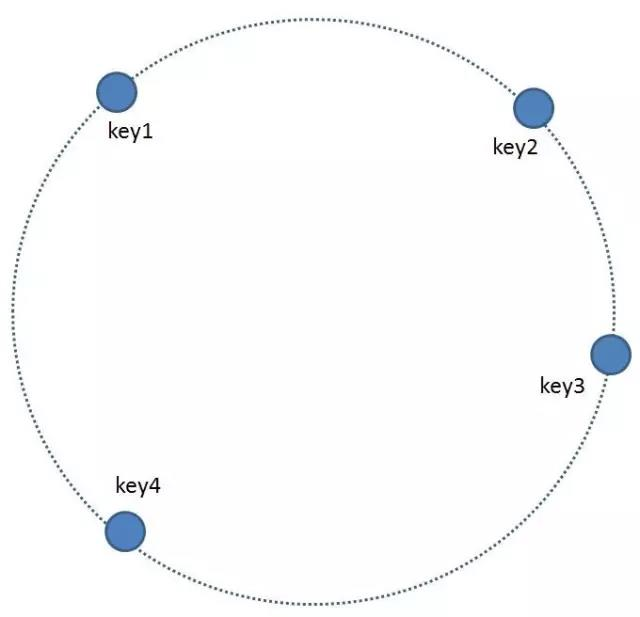 2、每一个缓存key都可以通过Hash算法转化为一个32位的二进制数,也就对应着环形空间的某一个缓存区。我们把所有的缓存key映射到环形空间的不同位置。