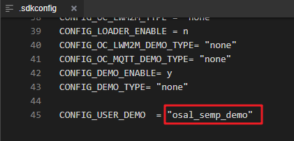 那么,如何配置 CONFIGUSERDEMO 宏定义呢?在工程根目录下的.sdkconfig文件中的末尾即可配置: