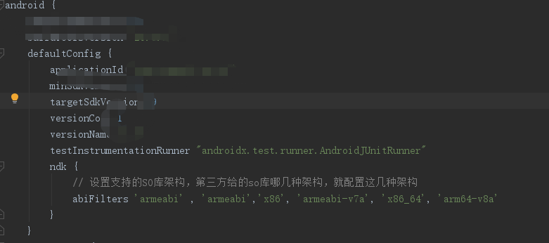 abiFilters 'armeabi' , 'armeabi','x86', 'armeabi-v7a', 'x86_64', 'arm64-v8a'