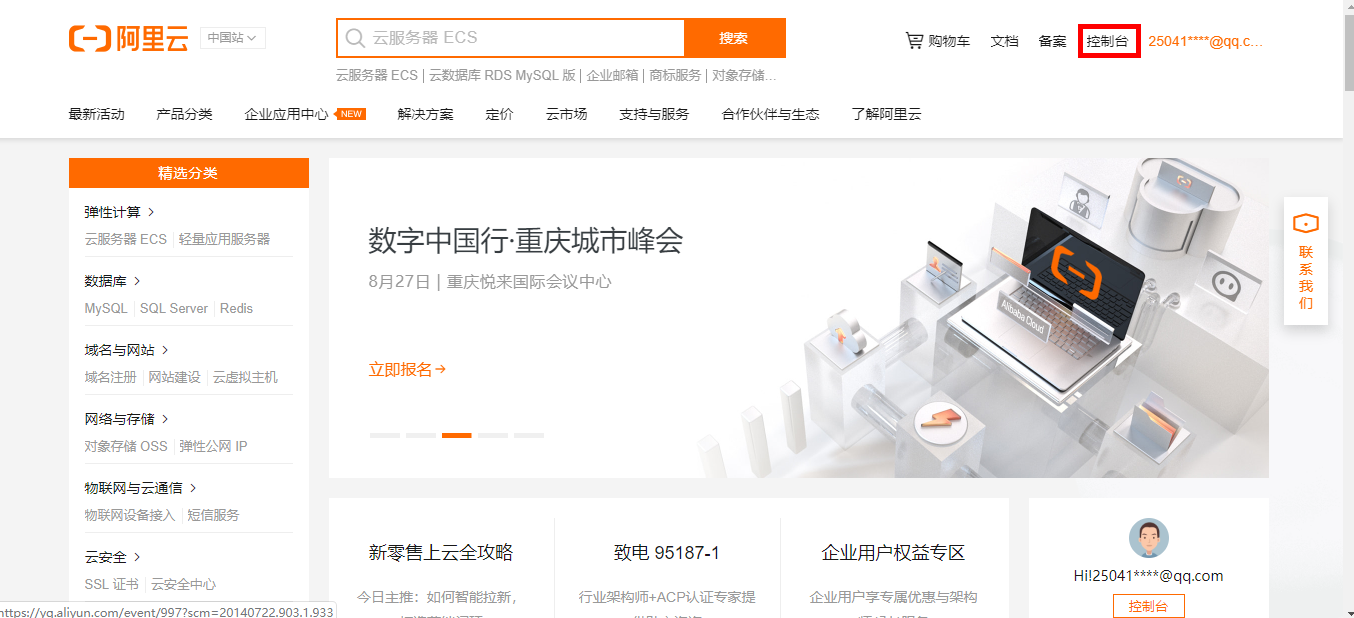 阿里云官网:https://www.aliyun.com/