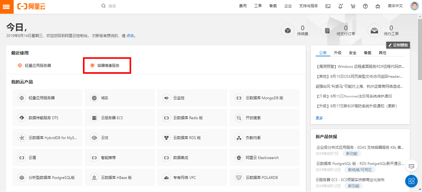 登录之后选择控制台,找到容器镜像服务