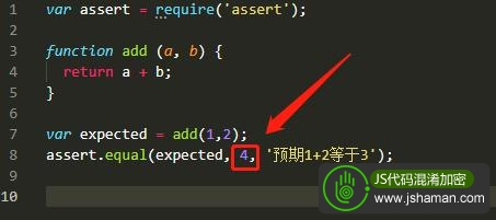 equal方法接受三个参数,第一个参数是实际值,第二个是预期值,第三个是错误的提示信息。