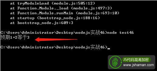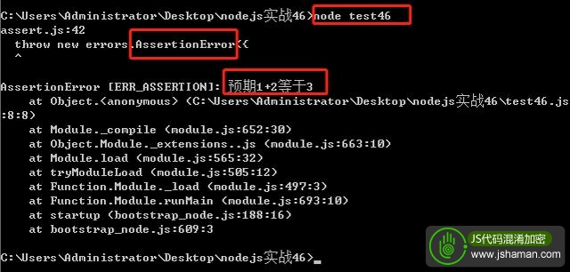 此时执行,assert.equal()的第一和第二个参数值相等,也就是比较第一和第二个参数的结果为true,这时不会有输出。