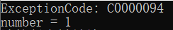printf("__try 中产生了异常,但是并没有处理异常 %X\n", GetExceptionCode());