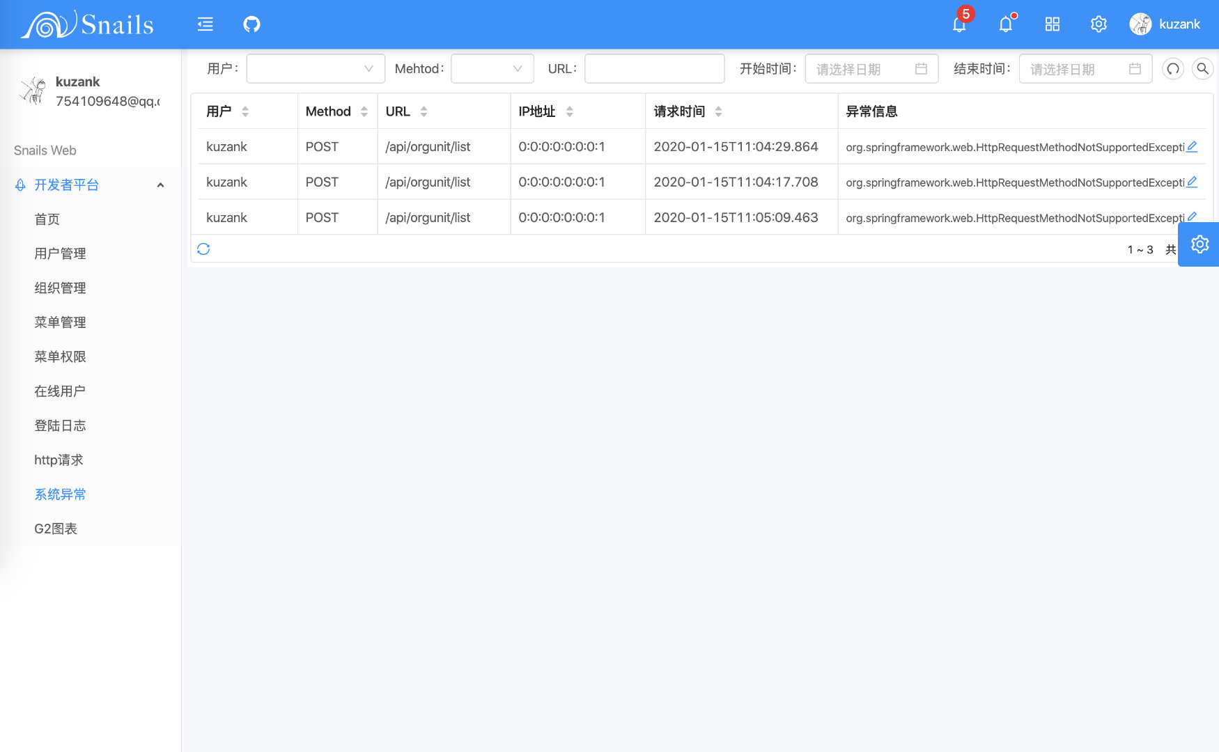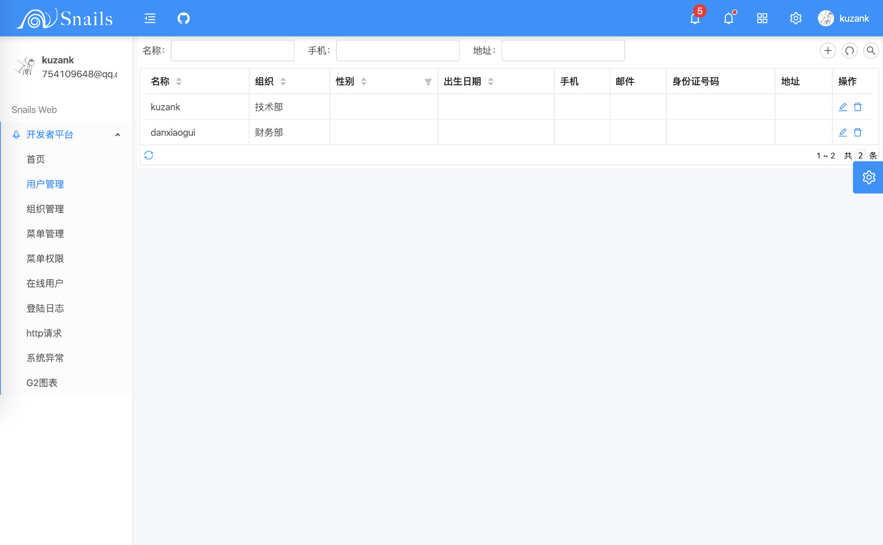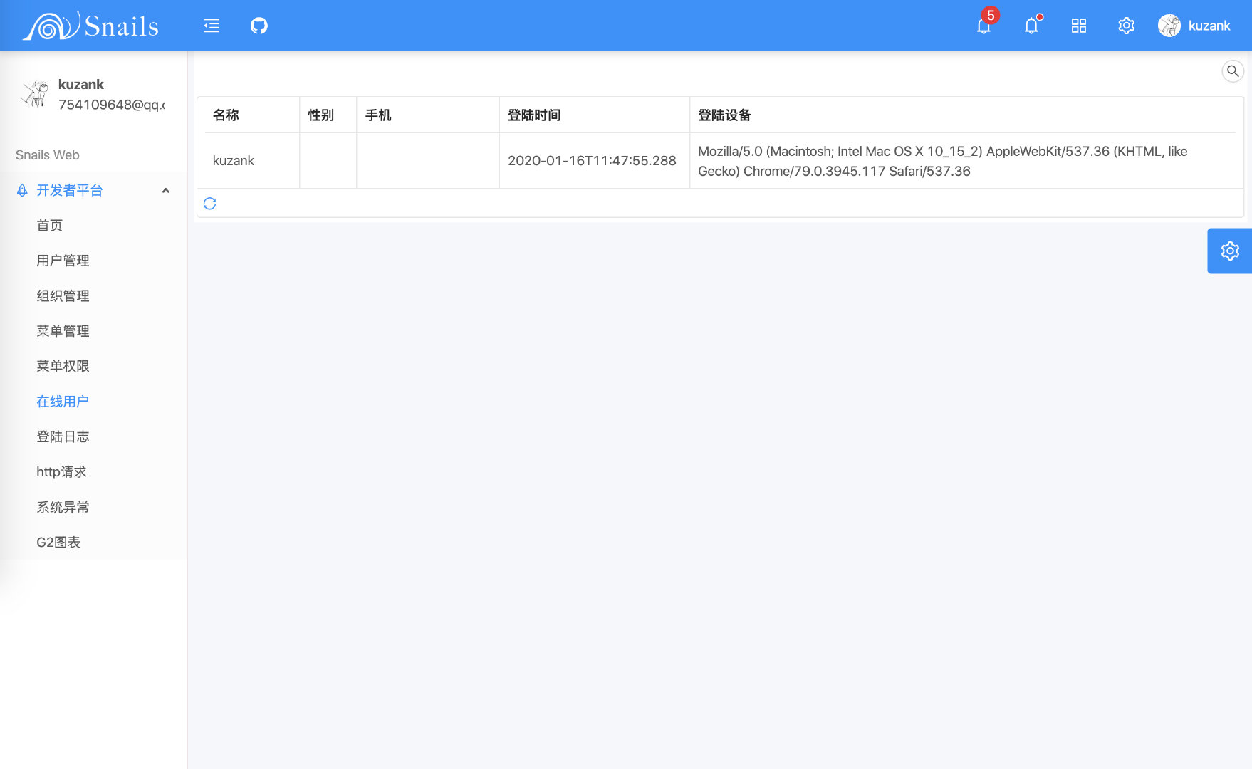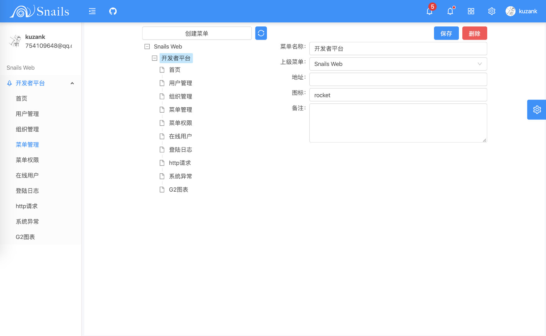 GitHub 地址:https://gitee.com/kuzan/snails