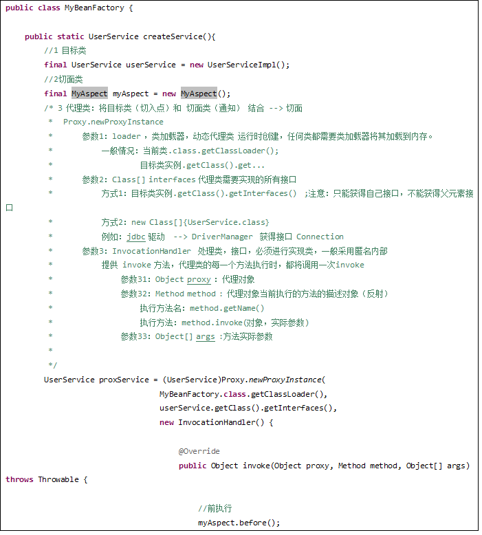 - Spring AOP使用纯Java实现,不需要专门的编译过程和类加载器,在运行期通过代理方式向目标类织入增强代码。