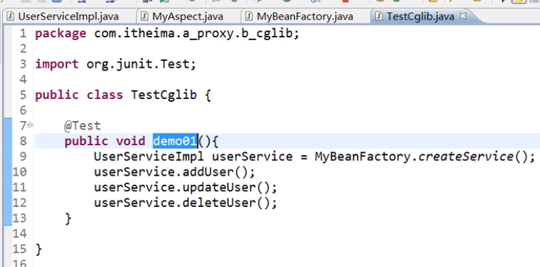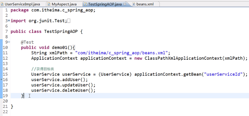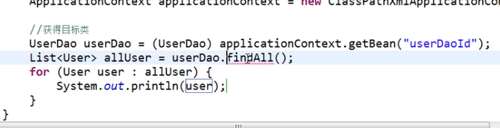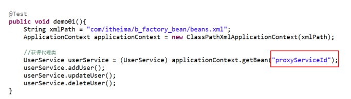 - 从spring容器中获得目标类,如果配置aop,spring将自动生成代理。